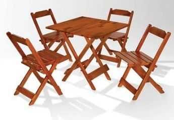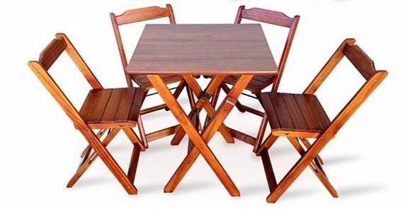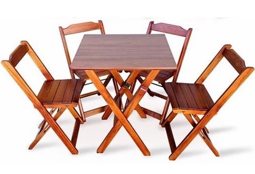 Kit Mesa Dobrável Quadrada - 0,70 x 0,70 + 4 Cadeiras Dobráveis - Madeira - Mel