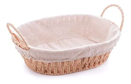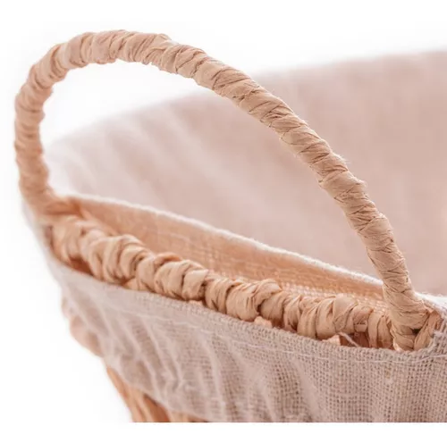• Cesta Oval com Alça em Papel e Forro em Tecido Bege 27x20x12cm - Wolff