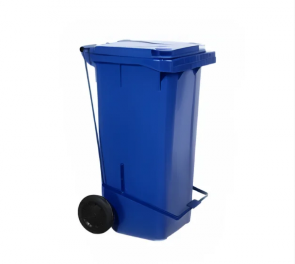 Lixeira Plastica 120 Litros com Pedal e Rodas - Azul - Papel