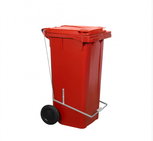 Lixeira Plastica 120 Litros com Pedal e Rodas - Vermelha- Plásticos