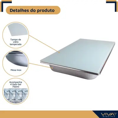 Mesa Térmica Fria para Buffet Self Service Frio - 4 Bolsas de Gelo Gel