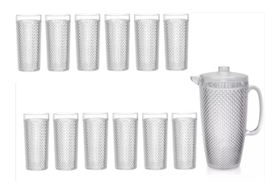 Kit Jarra + 12 Copos Bico de Jaca em Acrílico