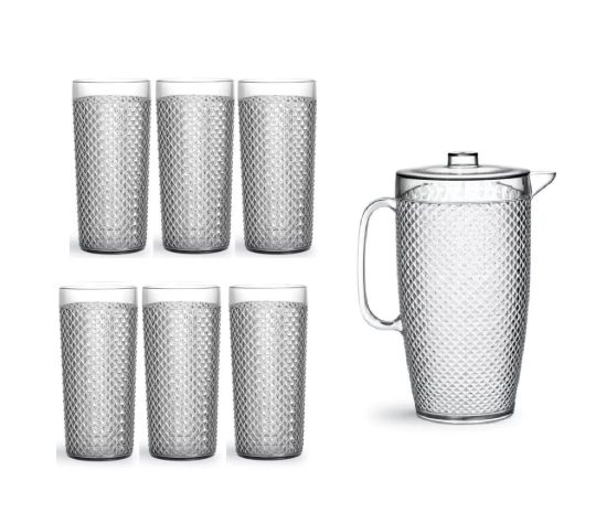 Kit Jarra + 6 Copos Bico de Jaca em Acrílico