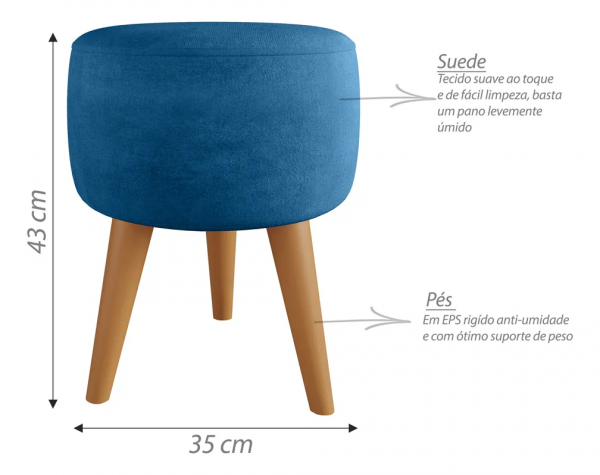 Puff Redondo Pé Palito Banqueta 35x35cm - Azul