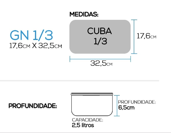 Cuba Gastronômica Aço Inox para Buffet GN 1/3×65mm (17,6 x 32,5 x 7,0) - 812-2