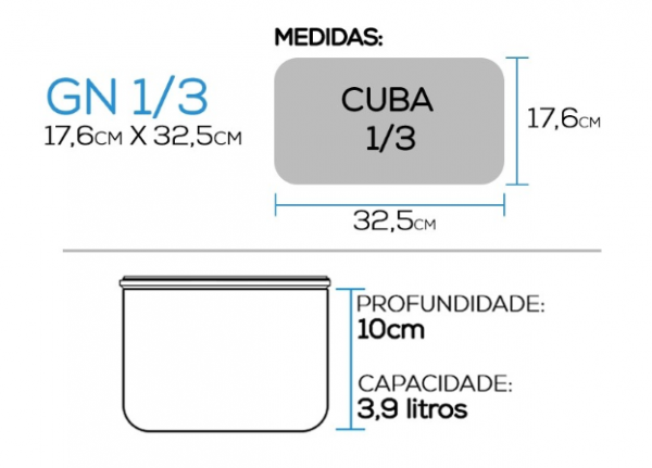Cuba Gastronomica Inox Gn 1/3 x 100mm-325x176mmx100mm