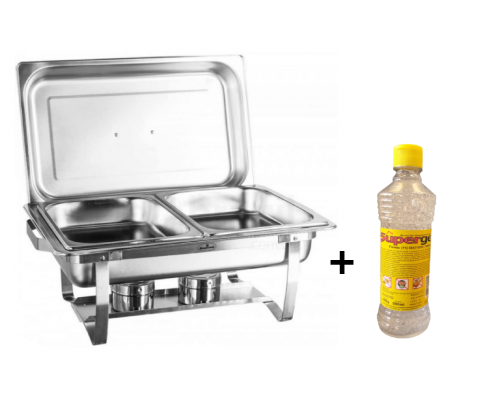 Rechaud Banho Maria em Aço Inox 2 Cubas - 9 Lts + Álcool em Gel 80% - 500ml