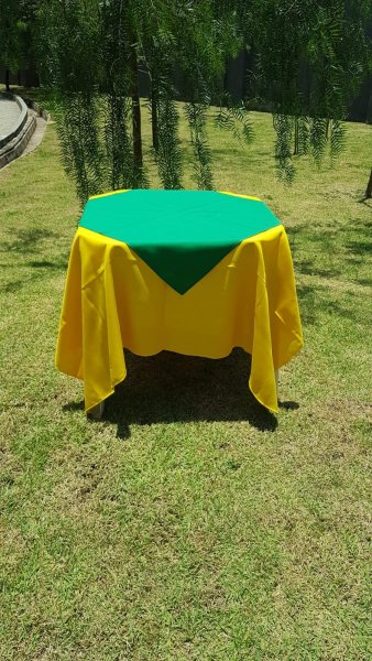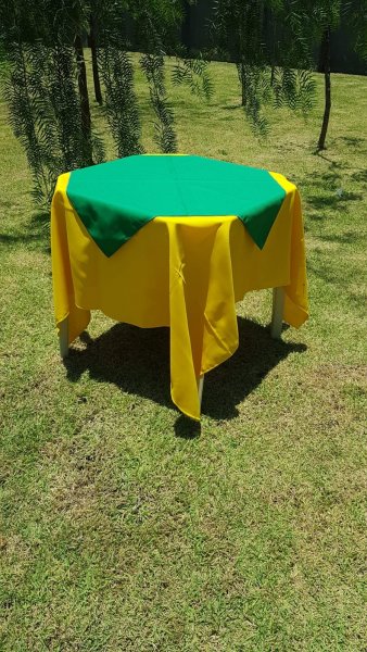 Toalha de Mesa Oxford - Amarela Bandeira - 1,50 x 1,50 + Cobre Mancha Verde Bandeira 0,75 x 0,75